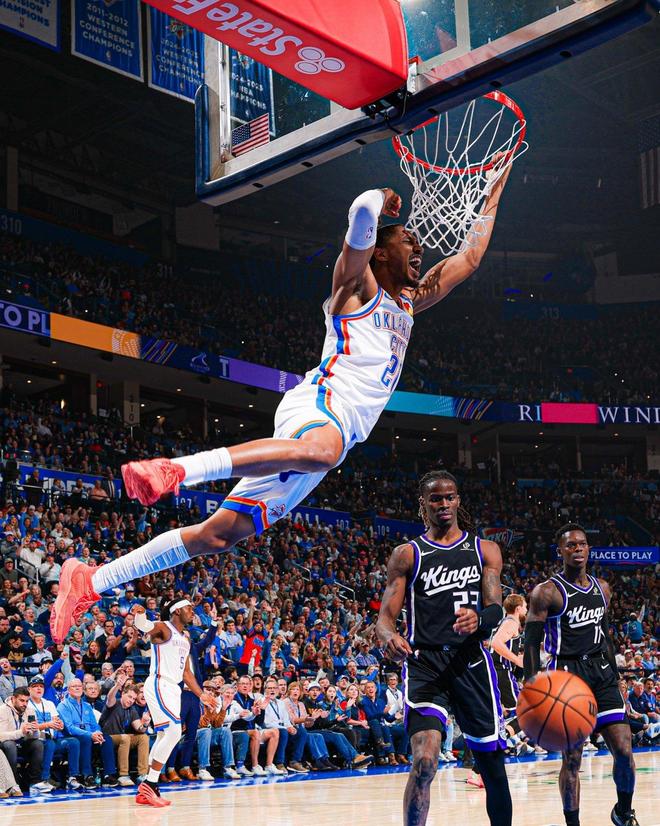 威少抢下了全队第二多的篮板球,还送出了全队最多的助攻。兼顾了攻防两端和串联球队的威少,帮助国王一度取得了两位数的领先。不过,威少末节4中1只有3分进账。面对亚历山大和雷霆的多点开花,威少也无力扭转场上局面。