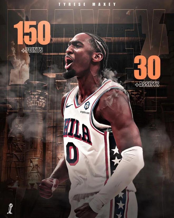 如果再加点标准,马克西则是NBA历史上第二位开赛前四场拿到150分+30助攻的球员,上一位还是2017年的威少(151分42篮板40助攻)。