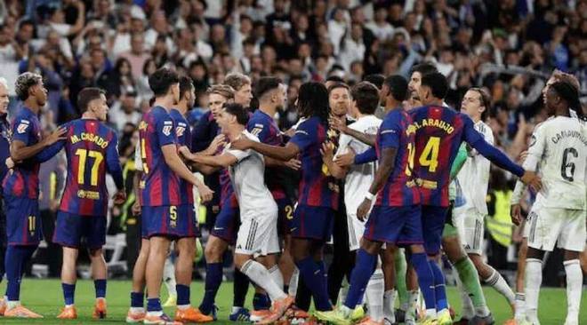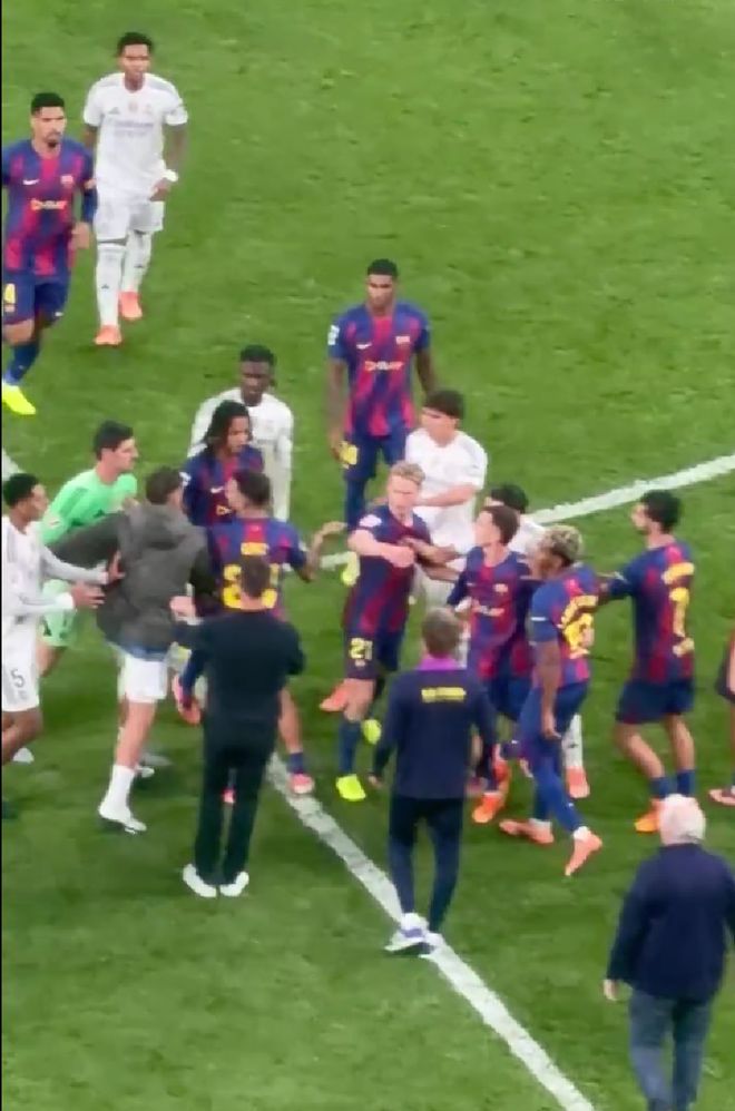 没想到,亚马尔的挑衅激怒了本就对他看不顺眼的皇马球员,冲上来就要给小孩一点教训。德容等人赶紧上来保护亚马尔,双方陷入了小规模的冲突。