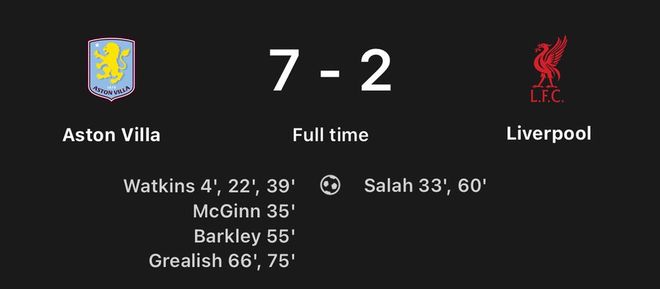 值得一提的是,利物浦上一次输给维拉是在2020年10月4日的英超比赛中,以2-7惨败。萨拉赫完成了球队唯二的两粒进球。